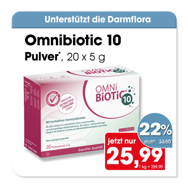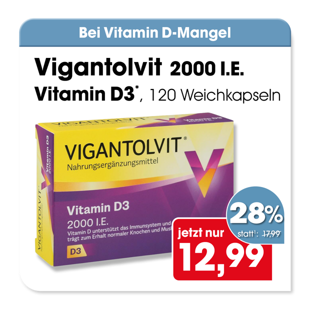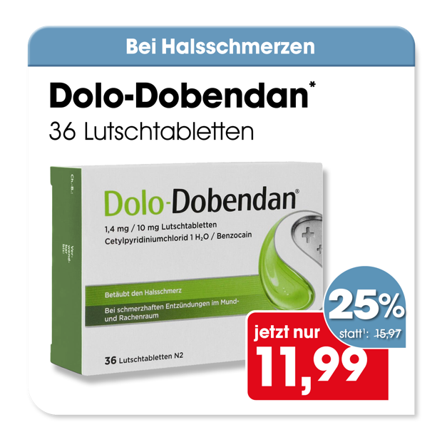 * Zu Risiken oder Nebenwirkungen lesen Sie die Packungsbeilage oder fragen Sie Ihren Arzt oder Apotheker. Abgabe in haushaltsüblichen Mengen. Solange der Vorrat reicht. Änderungen, Irrtümer und Druckfehler vorbehalten – Stand Druckschluss. Alle Preise in Euro inkl. MwSt. Rabatte nicht kombinierbar. Gültig vom 01. bis 28.02.2026. 1 In Apotheken bundesweit einheitlicher Verkaufspreis nach der Großen Deutschen Spezialitätentaxe (sog. Lauer-Taxe), der bei Abgabe zu Lasten der Gesetzlichen Krankenversicherung (GKV) berechnet wird. Es handelt sich nicht um die unverbindliche Preisempfehlung des Herstellers. 2 Unverbindliche Preisempfehlung des Herstellers.