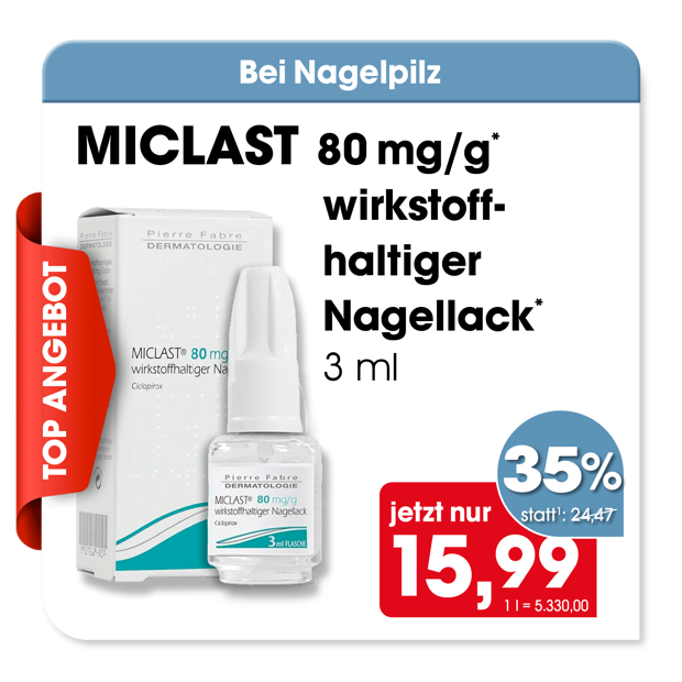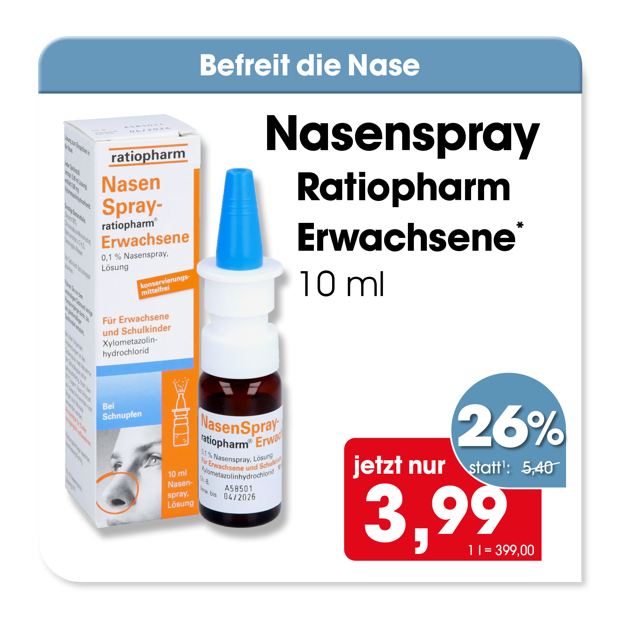 * Zu Risiken oder Nebenwirkungen lesen Sie die Packungsbeilage oder fragen Sie Ihren Arzt oder Apotheker. Abgabe in haushaltsüblichen Mengen. Solange der Vorrat reicht. Änderungen, Irrtümer und Druckfehler vorbehalten – Stand Druckschluss. Alle Preise in Euro inkl. MwSt. Rabatte nicht kombinierbar. Gültig vom 01. bis 31.10.2025. 1 In Apotheken bundesweit einheitlicher Verkaufspreis nach der Großen Deutschen Spezialitätentaxe (sog. Lauer-Taxe), der bei Abgabe zu Lasten der Gesetzlichen Krankenversicherung (GKV) berechnet wird. Es handelt sich nicht um die unverbindliche Preisempfehlung des Herstellers. 2 Unverbindliche Preisempfehlung des Herstellers.