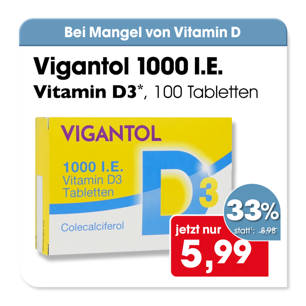 * Zu Risiken oder Nebenwirkungen lesen Sie die Packungsbeilage oder fragen Sie Ihren Arzt oder Apotheker. Abgabe in haushaltsüblichen Mengen. Solange der Vorrat reicht. Änderungen, Irrtümer und Druckfehler vorbehalten – Stand Druckschluss. Alle Preise in Euro inkl. MwSt. Rabatte nicht kombinierbar. Gültig vom 01. bis 31.01.2026. 1 In Apotheken bundesweit einheitlicher Verkaufspreis nach der Großen Deutschen Spezialitätentaxe (sog. Lauer-Taxe), der bei Abgabe zu Lasten der Gesetzlichen Krankenversicherung (GKV) berechnet wird. Es handelt sich nicht um die unverbindliche Preisempfehlung des Herstellers. 2 Unverbindliche Preisempfehlung des Herstellers.
