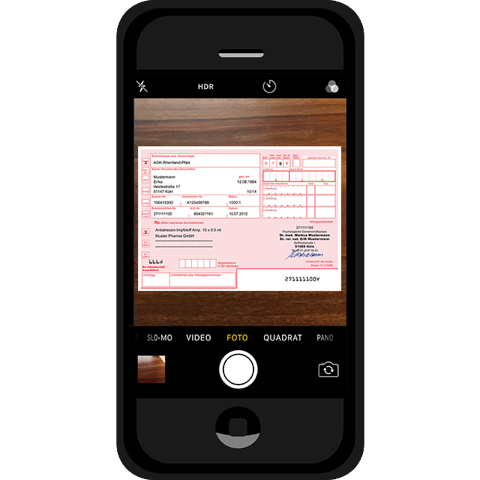 Einfach das Rezept scannen oder fotographieren und zu uns schicken. Sie erhalten eine E-Mail mit Ihrem Abholschein und der Information der frühestmöglichen Abholzeit.