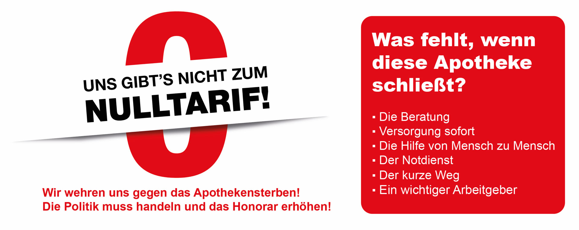 Wir wehren uns gegen das Apothekensterben! Die Politik muss handeln und das Honorar erhöhen! Ihre Apotheke muss überleben!